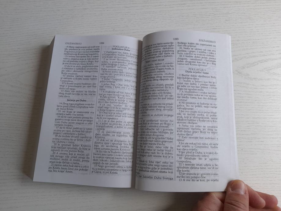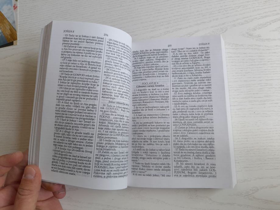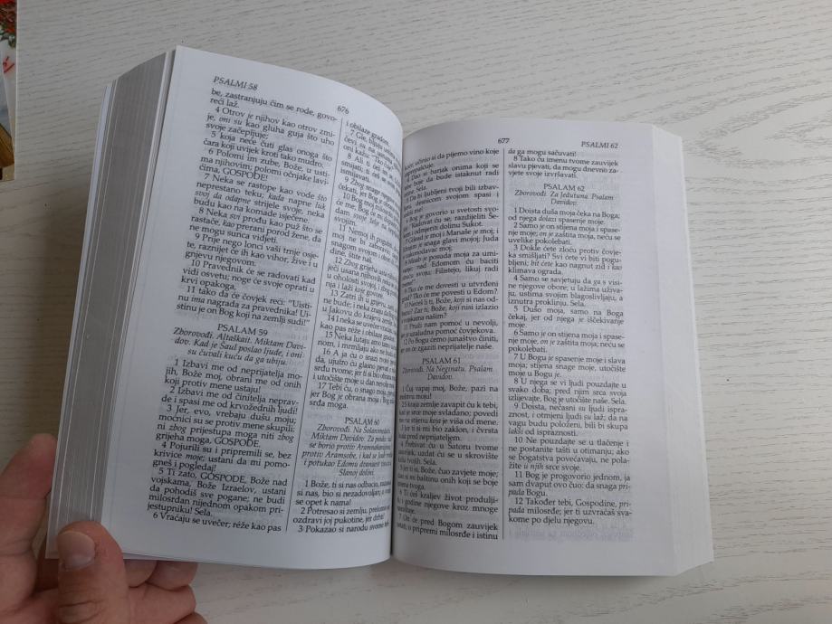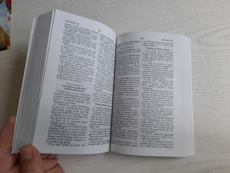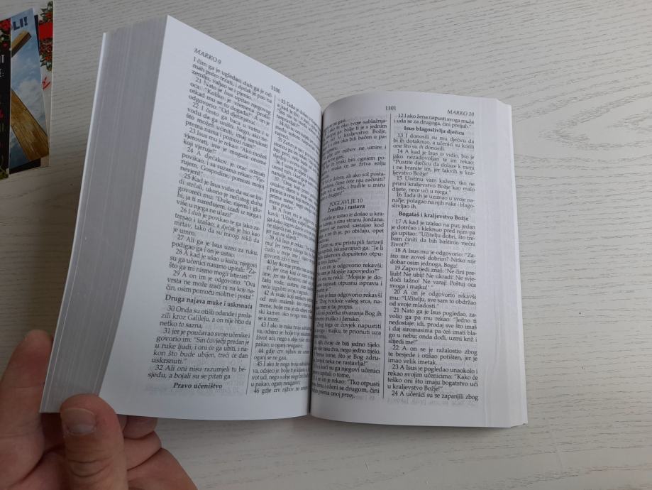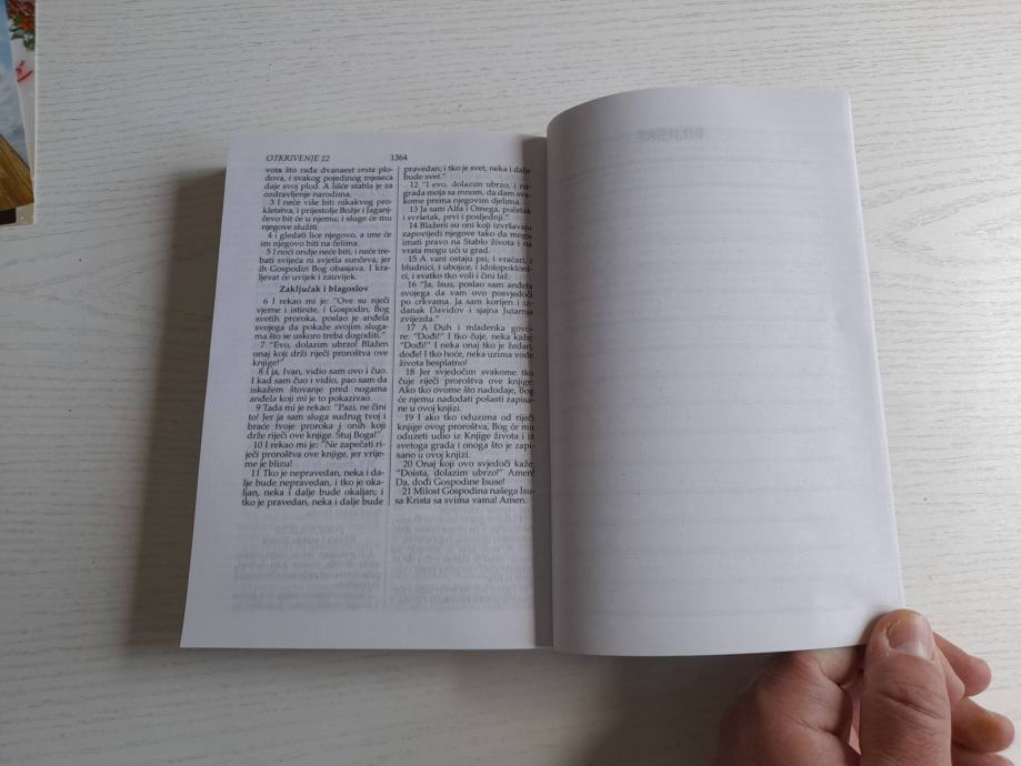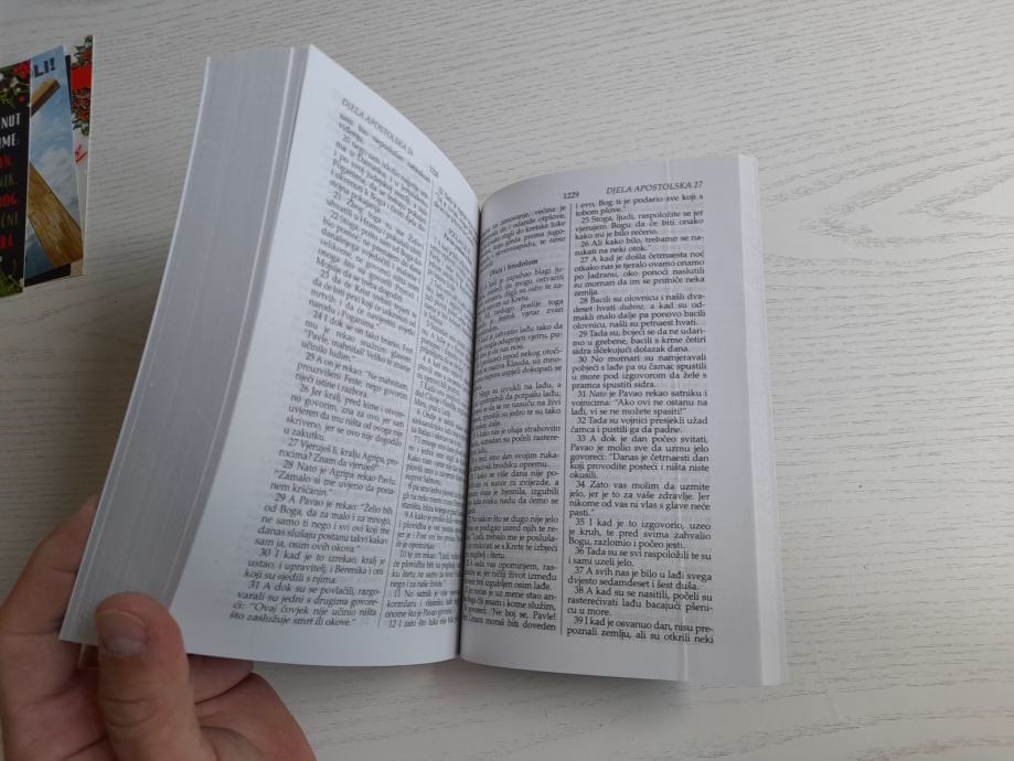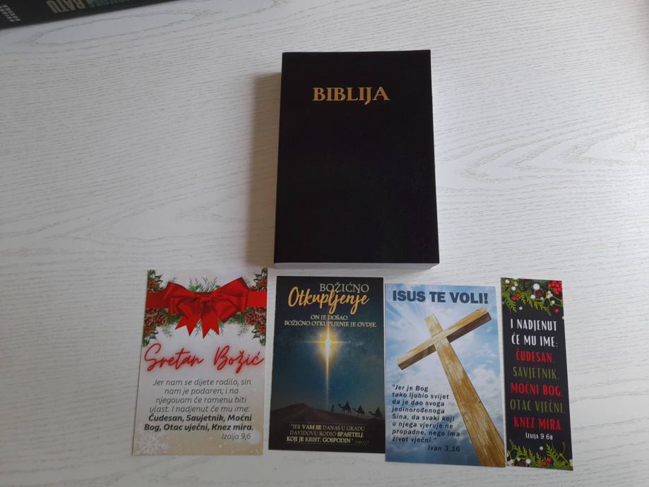 Osobno preuzimanje u Zagrebu ili slanje paketa preko Hrvatske pošte, Uz Bibliju se dobiju razglednice i bookmarkeri. Tiska i Box Now u Hrvatsku i inozemstvo (troškove slanja snosi kupac).