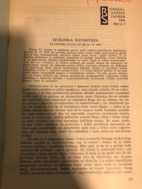 Bogoslovska smotra, Br. 2, god. XXXVIII, 1968.