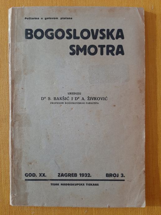 Bogoslovska smotra - dr. S. Bakšić, A. Živković, izdanje 1932