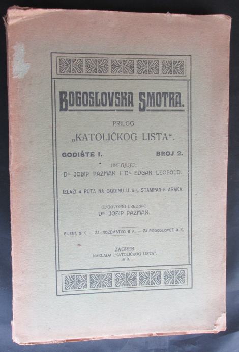 BOGOSLOVSKA SMOTRA, PRILOG KATOLIČKOG LISTA, Zagreb 1910.g.