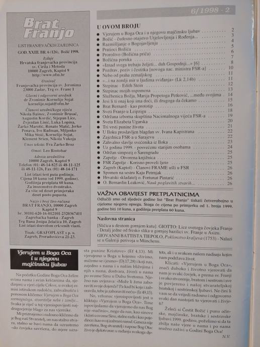 BRAT Franjo 6 / 1998. - Gl. urednik : Zvonimir Kornelije ŠOJAT