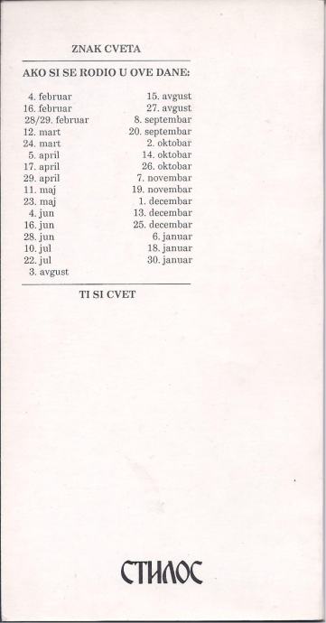 Cvet, astečki horoskop, izdanje Stilos, 1990., moguća razmjena