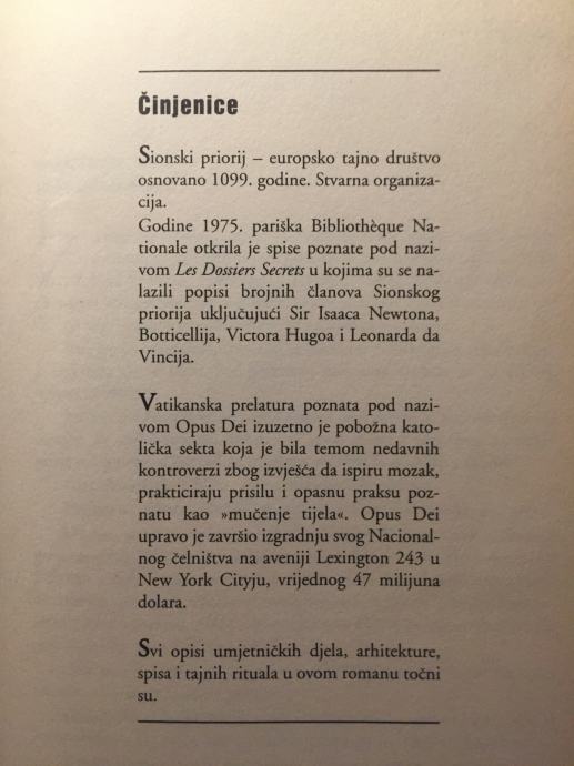Da Vincijev kod je kriminalistički triler američkog pisca Dana Browna objavljen 2003. godine. Roman je kombinacija zabavnog romana s raznim elementima teorija zavjere.