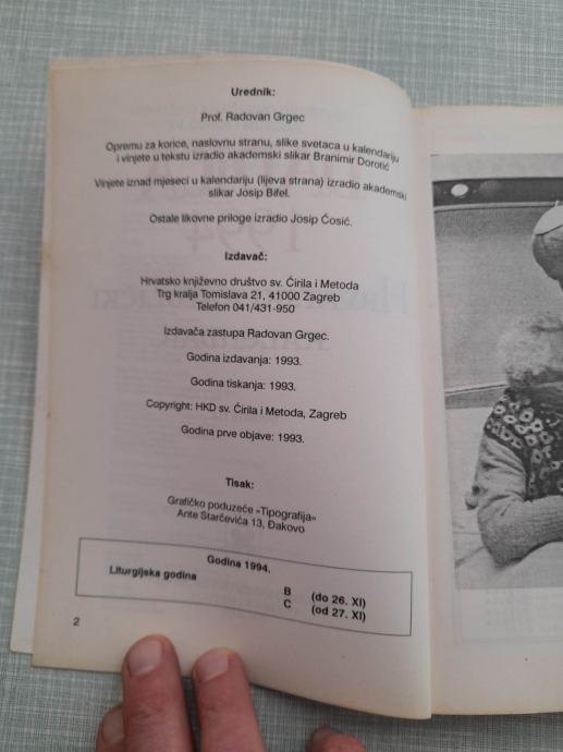 knjiga danica 1994 hrvatski katolički kalendar,religija