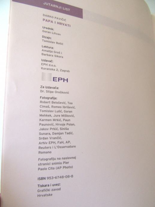 DARKO PAVIČIĆ PAPA I HRVATI,JUTARNJI LIST,2005