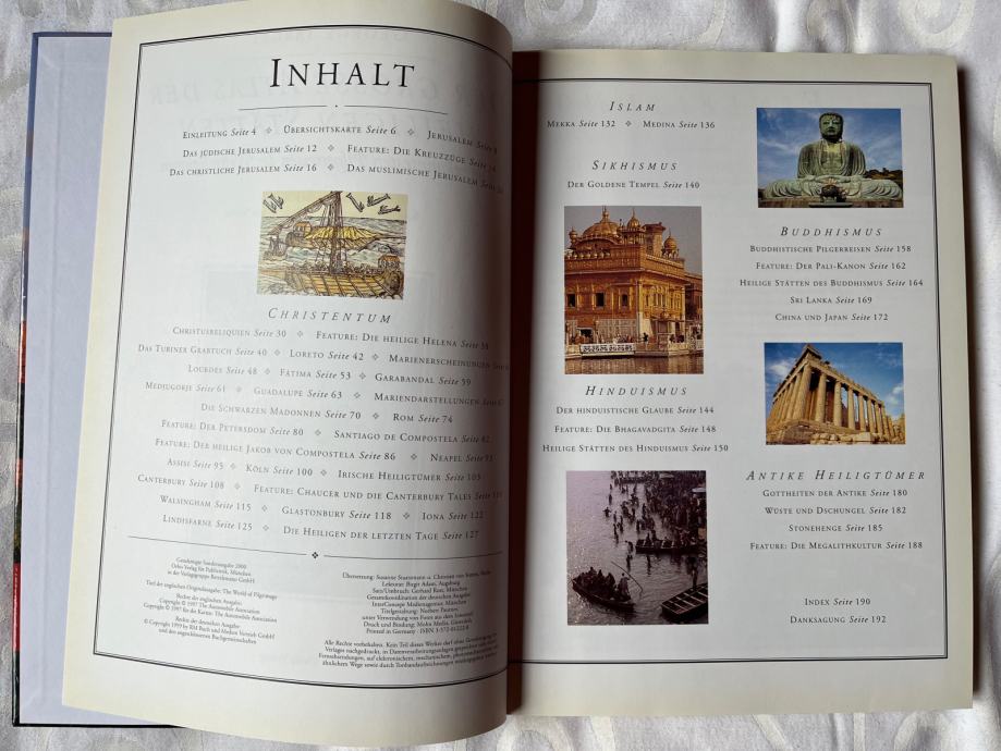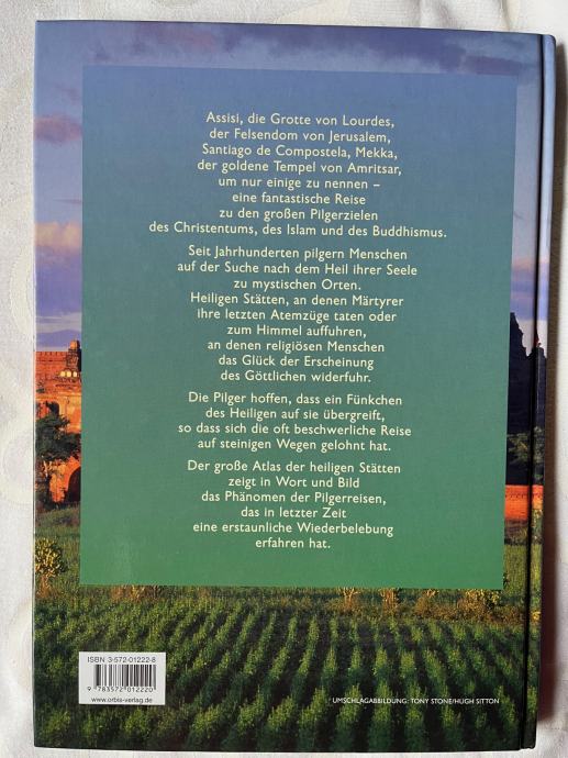 Assisi, die Grotte von Lourdes, der Felsendom von Jerusalem, Santiago de Compostela, Mekka, der goldene Tempel von Amritsar, um nur einige zu nennen - eine fantastische Reise zu den großen Pilgerzielen des Christentums, des Islam und des Buddhismus Seit Jahrhunderten pilgern Menschen auf der Suche nach dem Heil ihrer Seele zu mystischen Orten. Heiligen Stätten, an denen Märtyrer ihre letzten Atemzüge taten oder zum Himmel auffuhren, an denen religiösen Menschen das Glück der Erscheinung des Göttlichen widerfuhr. Die Pilger hoffen, dass ein Fünkchen des Heiligen auf sie übergreift, so dass sich die oft beschwerliche Reise auf steinigen Wegen gelohnt hat. Der große Atlas der heiligen Stätten zeigt in Wort und Bild das Phänomen der Pilgerreisen, das in letzter Zeit eine erstaunliche Wiederbelebung erfahren hat. »Mir sind die Pilger. immer weiter werden zvirgehen: üßer den letzten scfmeeßedecfoen 'Berg in der ferne, überjenes aufgezüngelte oder glänzende Meer. «(James Elroy Flecker, Die goldene Reise nach Samarkandeine Pilger - oder Wallfahrt ist eine Reise an einen Ort, der als heilig gilt. Sie wird aus religiösen Gründen unternommen, die über das Bedürfnis nach dem täglichen Gottesdienst hinausgehen. Schon eine kurze Fahrt zu einem Heiligtum kann also eine Wallfahrt sein. Es gibt viele verschiedene Gründe, um auf eine Pilgerreise zu gehen: die Hoffnung auf spirituellen Beistand oder materiellen Nutzen, die Genesung von einer Krankheit oder einem anderen Leiden, das Erlangen von Seelenfrieden oder Wohlstand, das Bedürfnis nach Nähe zu Gleichgesinnten oder nach Buße für begangene Sünden, der Wunsch, für erhaltenes Glück zu danken oder schlicht Lobpreisung und Anbetung. Jede Pilgerreise braucht ein Ziel: Weltweit gibt es viele heilige Stätten, alte und neue. Sie liegen auf abgelegenen Hügeln oder Bergen, auf verwitterten Felsen, in einsamen Höhlen in der Wildnis, an kleinen Seen, Flüssen, in Wäldern, auf sonnenbeschienenen Waldlichtungen oder in geheimnisvollen Steinkreisen. Einige sind heilig, weil eine Gottheit an dieser Stelle auf der Erde wandelte oder einem oder mehreren Gläubigen erschienen ist, oder weil heilige Männer und Frauen hier lebten, beteten und starben und etwas von sich zurückgelassen haben. Von der Bedeutung derartiger Reliquien überzeugt, haben Menschen sich darum bemüht, diese - seien sie nun greifbar oder spirituell - in Gebäuden aus Holz oder Stein aufzubewahren. Pilgerfahrt ist ein Wort, das viele Vorstellungen beinhaltet. Die meisten Religionen haben Pilgerziele. Einige von ihnen sind einfach und schmucklos, andere prächtig verzierte Gebäude. Sieht man einmal vom Interesse an der Schönheit oder der Geschichte eines Pilgerziels ab, warum sollten Gläubige dann überhaupt auf Pilgerfahrt gehen? Ist diese Idee nicht antiquiert oder sogar abergläubisch? Welche mögliche Bedeutung kann eine solche Reise heutzutage für uns haben? Vielleicht laufen wir ja Gefahr, unsere Spiritualität zu verlieren, und vielleicht versuchen Pilger durch ihre Reise, sie wiederzugewinnen? Eine Pilgerreise zu unternehmen, heißt zu lernen, »den Himmel in einer wilden Blume zu sehen und die Ewigkeit in der Hand zu halten«, wie William Blake es tat (Lieder der Unschuld). "Einen neuen Weg durch das Chaos finden Heilige Orte brauchen keinen priesterlichen Segen und keine Zustimmung von Politikern. Pilger, die auf der Suche nach dem großen Geheimnis des Kosmos nach Lourdes, Stonehenge, Santiago de Compostela oder zur Großen Halle Buddhas reisen, müssen ihren Weg durch das unselige durcheinander der Religionen und über die rerdrähte politischer Vorurteile suchen. Man kann diese heiligen Pilgerorte auf zwei arten betrachten: mit der Neugier eines Touristen mit dem Glauben eines Pilgers. Der Skeptiker wird nur das sehen, was er bereits zu wissen glaubt - den Schaden trägt er selbst.