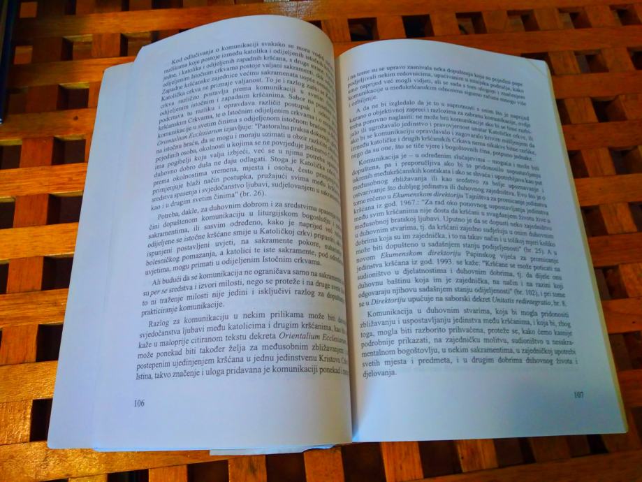 Knjiga Komunikacija u svetim činima je objavljena 2001., a na obuhvatan način donosi važne smjernice i odredbe Katoličke crkve vezane uz komunikaciju u svetim činima između katolika i nekatolika. Pri tome donosi detaljan povijesni pregled iz kojega se vidi kakva je ta komunikacija u svetim činima bila omogućena u vremenu od prvih stoljeća do Zakonika kaonskog prava iz 1917. god., od 1917. do danas, te prema aktualnom Zakoniku. U njoj se također donose teološka načela prema kojima je ta komunikacija omogućena i koliko je omogućena, te prikaz crkvenih dokumenata koji govore o toj tematici.