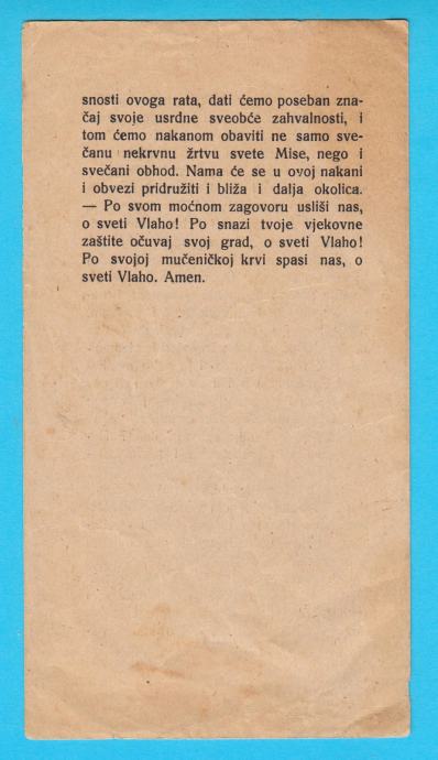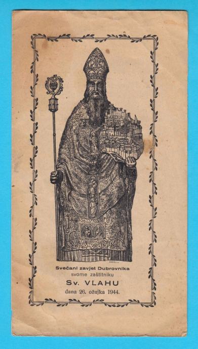 DUBROVNIK Svečani zavjet Dubrovnika svome zaštitniku Sv. Vlahu (1944)
