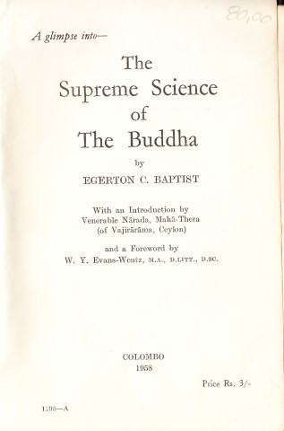 Egerton C. Baptist: A Glimpse into : The Supreme Science of the Buddha