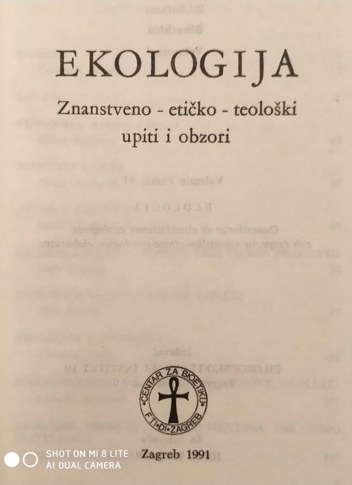 Ekologija. Znanstveno-etički-teološki upiti i obzori.