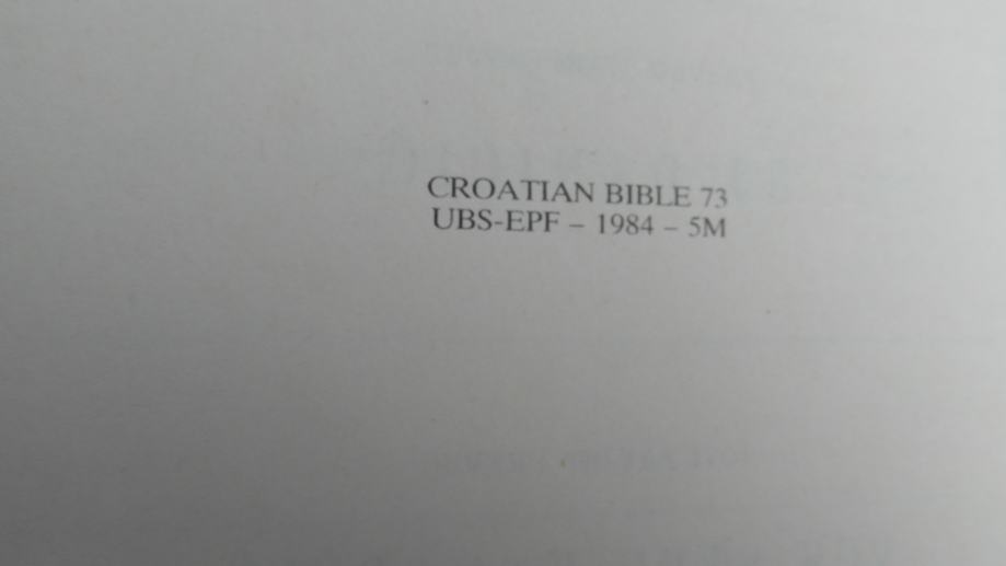 Croatian Bible , izdano 1984 godine. Na naslovnici je drveno raspelo sa Isusom.