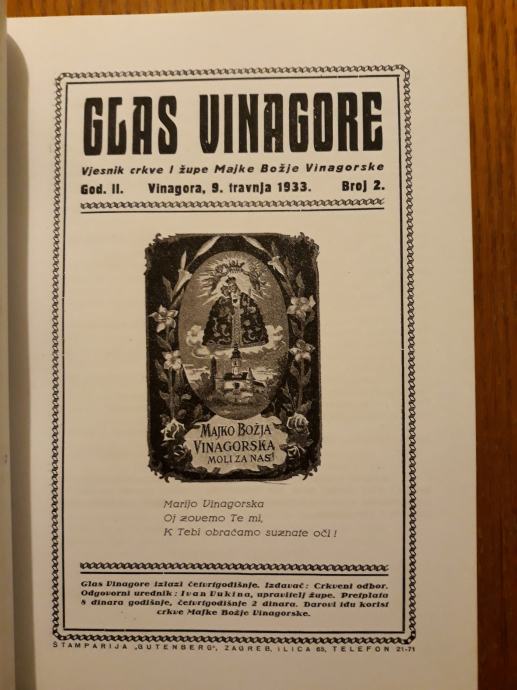 GLAS sa VINAGORE(Glasnik Majke Božje Vinagorske)-Godišta 1932. - 1936.