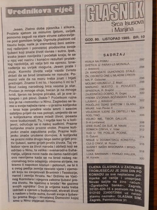 Glasnik SRCA ISUSOVA i MARIJINA 10,1989./Gl.ur. : Valentin MIKLOBUŠEC