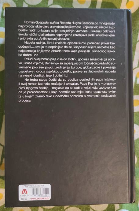 Roman Gospodar svijeta Roberta Hugha Bensona po mnogima je najproročanskije djelo u svjetskoj književnosti, koje na vrlo slikovit i uzbudljiv način prikazuje svijet posljednjih vremena u kojemu prikriveni sekularistički totalitarizam neprimjetno zarobljava ljude, uništava vjeru i pripravlja put Antikristovoj vladavini.