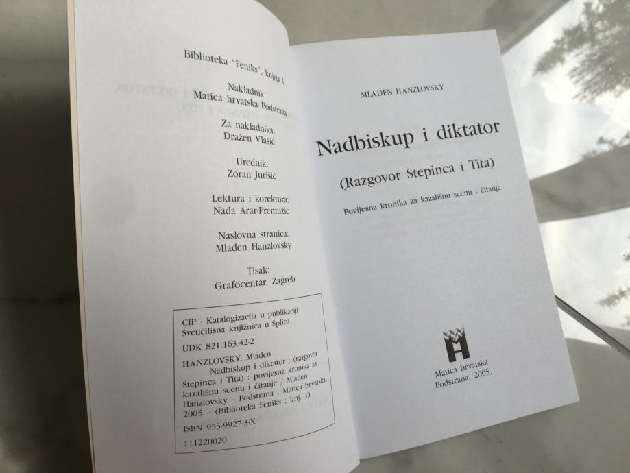 Hanzlovsky, NADBISKUP I DIKTATOR: Razgovor Stepinca i Tita