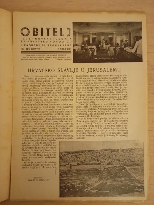 Časopis Obitelj iz 1937. godine s fokusom na hodočašće u Jeruzalem