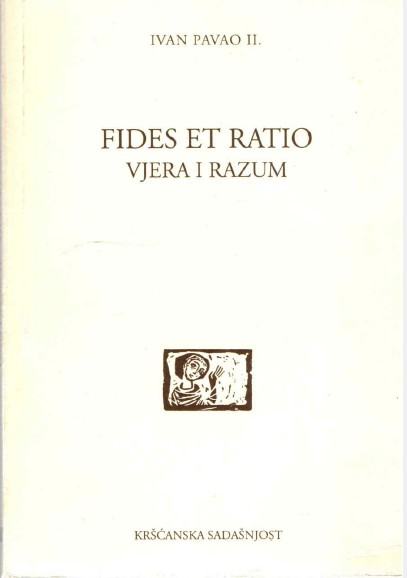 Sadržaj: Enciklika sustavno izlaže stajalište Katoličke crkve o odnosu ljudske spoznaje postignute vjerom i one postignute razumom (filozofijom).Glavna tema: Naglašava se komplementarnost, a ne isključivost ova dva pristupa u traganju za istinom. U tekstu se navodi da su "Vjera i razum (Fides et ratio) poput dvaju krila kojima se ljudski duh uzdiže prema istini".Izdavanje: Izvorno je objavljena na latinskom jeziku 1998. godine. Hrvatski prijevod objavljen je, između ostalog, 1999. godine.Stranica: 151Jezik: ZagrebPismo: LatinicaStanje: OdličnoUvez: MekiGodina: 1999