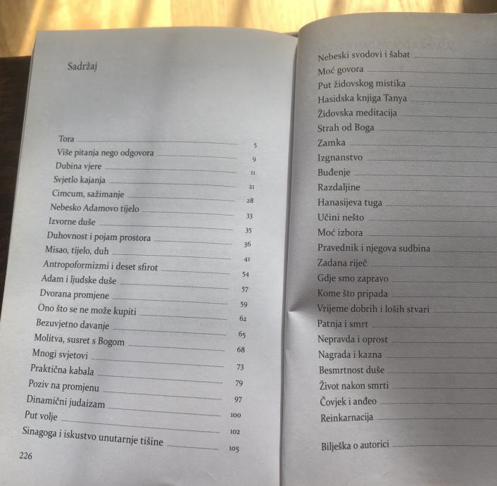 Ovom knjigom autorica se nadovezuje na svoja ranija bavljenja judaizmom. Na temelju starih židovskih spisa i mističnih židovskih knjiga, brojnih priča i legendi, ona analizira i promišlja fenomene duše, kajanja, molitve, izgnanstva, patnje, smrti, nepravde i oprosta. Iznoseći esencijalne istine o životu, analitično pristupa odnosu misli, tijela i duha, propitkujući pritom i snagu čovjekova osobnog izbora.