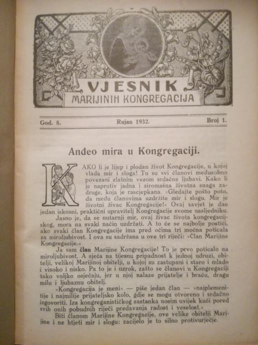 Josip Predragović (ur.): Vjesnik Marijinih kongregacija (1932.)