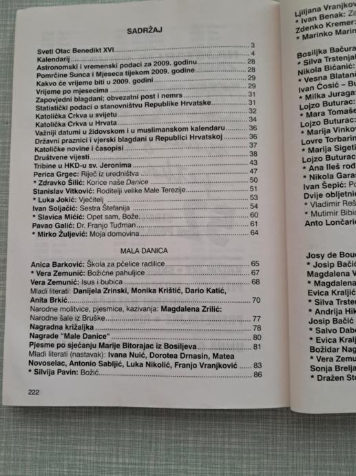 knjiga danica 2009 hrvatski katolički kalendar,religija