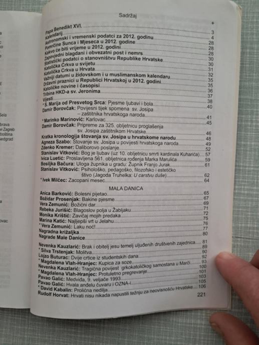 knjiga danica 2012 hrvatski katolički kalendar,religija