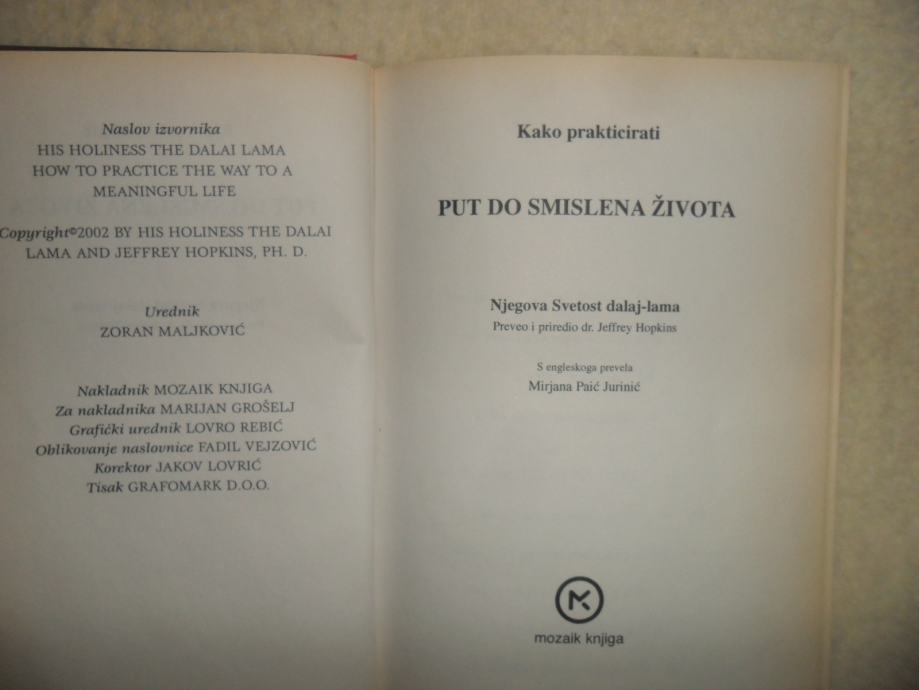 Knjiga "Put do smislena života" dalaj-lama