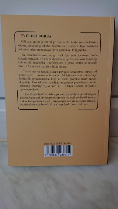 Knjiga Velika borba, Ellen G. White, NOVO, meki uvez, 487 str., 2019.g.
