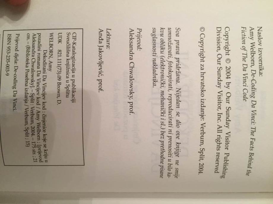Knjiga Dekodirani Da Vincijev kod predstavlja argumentiran i utemeljen odgovor na te tvrdnje, a u njoj se raspravlja i o ostalim kontroverzama iznesenima u romanu, uključujući i one o Svetom gralu, templarima, tajnom društvu Sionski priorij, skrivenim porukama djela Leonarda da Vincija itd.