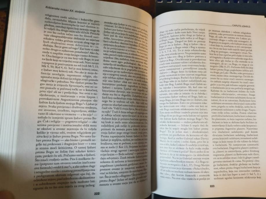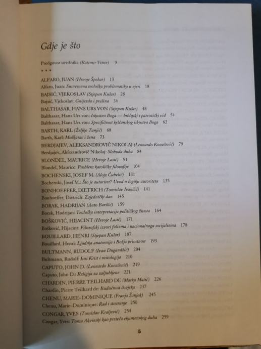 Riječ je o pozamašnoj knjizi od preko 800 stranica koja se bavi kršćanskom misli u XX. st. onako kako su je na 3. programu Hrvatskoga radija prikazivali različiti hrvatski autori. Od 1991. pa sve donedavno urednik različitih emisija na tome programu HR Ratimir Vince s različitih je vidika donosio teološku i filozofsku misao zapadnoga kršćanstva, a tekstovi u samoj knjizi rezultat su takvih priloga od 1997. do 2002. godine. Tako su, među ostalima, obrađivani teolozi 20. st. Theilhard de Chardin, Hans Urs von Balthasar, Karl Barth, Hans Küng, Maurice Blondel, Yves Congar, Emmanuel Levinas, Gabriel Marcel, Emmanuel Mounier, Karl Rahner, Bernhard Welte i još mnogi drugi. Autori članaka su naši istaknuti teolozi i filozofi Josip Ćurić, Stjepan Kušar, Stjepan Baloban, Alojz Čubelić, Franjo Zenko, Željko Tanjić i drugi. Knjiga je izišla kao suizdanje Hrvatskoga radija i Kršćanske sadašnjosti.