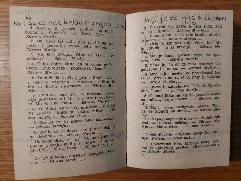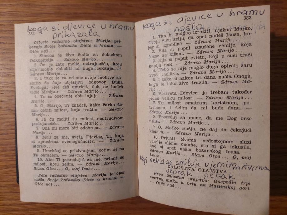 Margine obilježavane od str. 379 do 393 - vlastoručno kemijskom olovkom ispisivani kraći podsjetnici , bilješke , nadopune (prikazano na dvije fotografije) - vizualna forma teksta nije narušena.