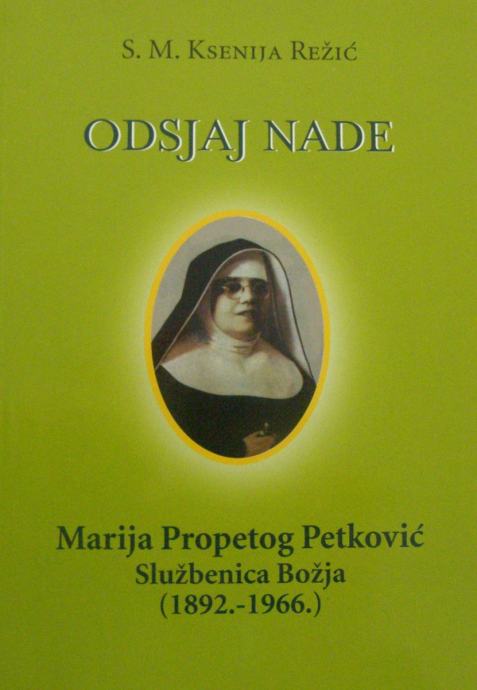 Ovaj kratak životopis s. Marije Propetoga Petković pod naslovom Odsjaj nade, koji je napisala s.M. Ksenija Režić, odlikuje se jednostavnim iskazom jer je temeljen prvenstveno na spisima, svjedočanstvima i pismima. Nema ništa od naivne legendarnosti hagiografije, niti začudnosti svetačkoga štiva, iako je pisan lijepim i biranim stilom. Neka ovo štivo bude pobudnica svima onima koji ovaj svijet žele učiniti ljepšim i boljim, a taj veliki zadatak započinju od sebe.