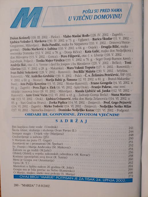 MARIJA 7-8-9 - Split , 2002. - Vjerski list za Marijine ŠTOVATELJE