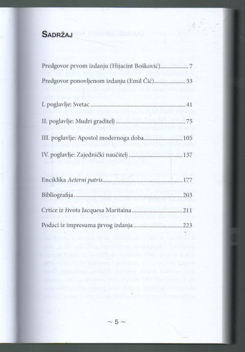 Jaques Maritain napisao je biografiju jedinstvenog „doctor angelicusa“ Tome Akvinskog, zaštitinika filozofa, knjižara, studenata teologije i sveučilišta. U prvom planu je ljudski um i njegova spoznajna moć vječnih istina. U dodatku knjige nalazi se papina enciklika „Aeterni patris“ tiskana ovdje prvi put nakon sto trideset godina, uz sažetu biografiju hrvatskih tomista i biografiju autora.