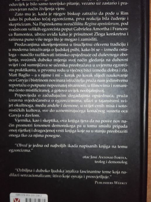 VERBUM SPLIT 2011. VRLO DOBRO DO ODLIČNO OČUVANA..JEDNA OD NAJBOLJIH IKADA NAPISANIH KNJIGA NA TEMU EGZORCIZMA...OZBILJNA I DUBOKO LJUDSKA ANALIZA FASCINANTNE TEME...