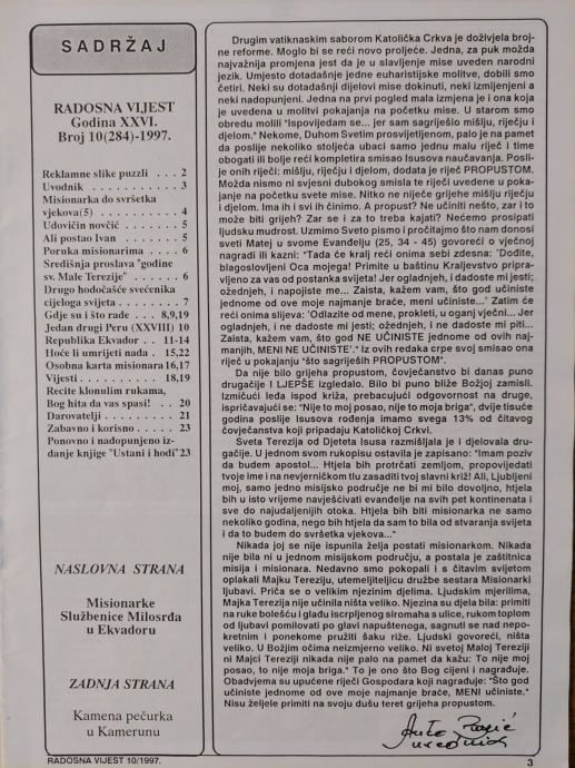 Misijski informativni list-RADOSNA VIJEST 1997.g./Gl. ur. : Anto BURIĆ