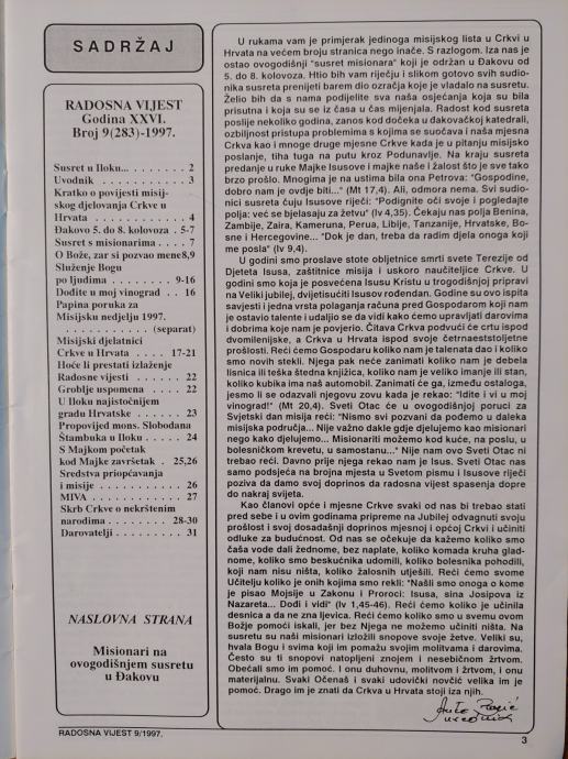 Misijski informativni list-RADOSNA VIJEST 1997.g./Gl. ur. : Anto BURIĆ