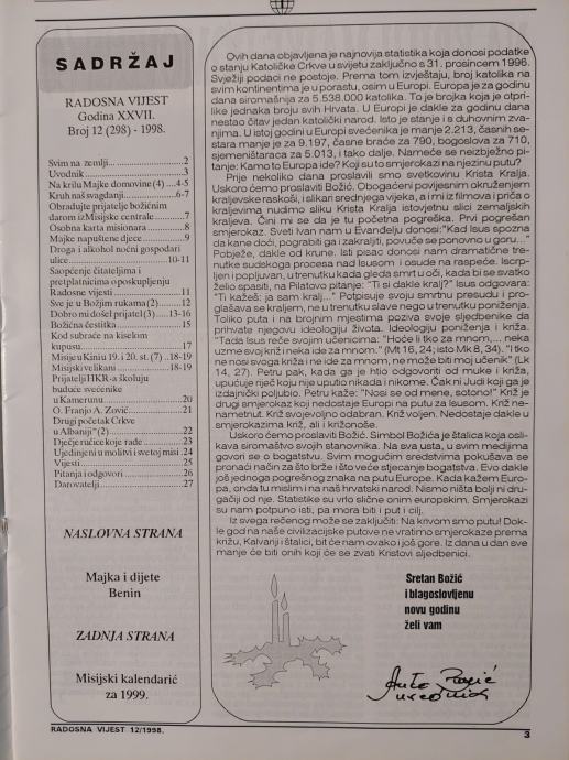 Misijski informativni list-RADOSNA VIJEST 1998.g./Gl. ur. : Anto BURIĆ
