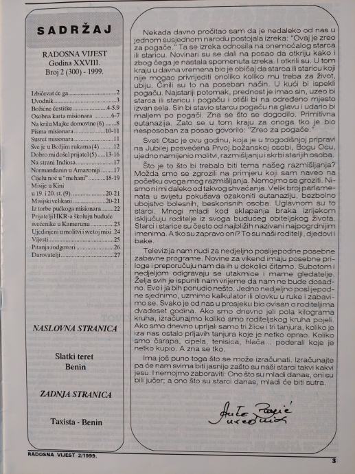 Misijski informativni list-RADOSNA VIJEST 1999.g./Gl. ur. : Anto BURIĆ