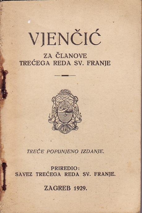 6. VJENČIĆ ZA ČLANOVE TREĆEGA REDA SV. FRANJE , ZAGREB 1929. 126 str. nema prednjeg ovitka...…...50 kuna