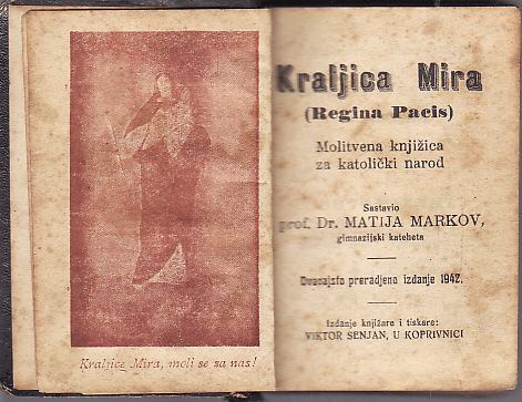 3. MATIJA MARKOV - KRALJICA MIRA , KOPRIVNICA 1942. TVRDI UVEZ 12 X 8 CM , 348 STR.................200 KUNA