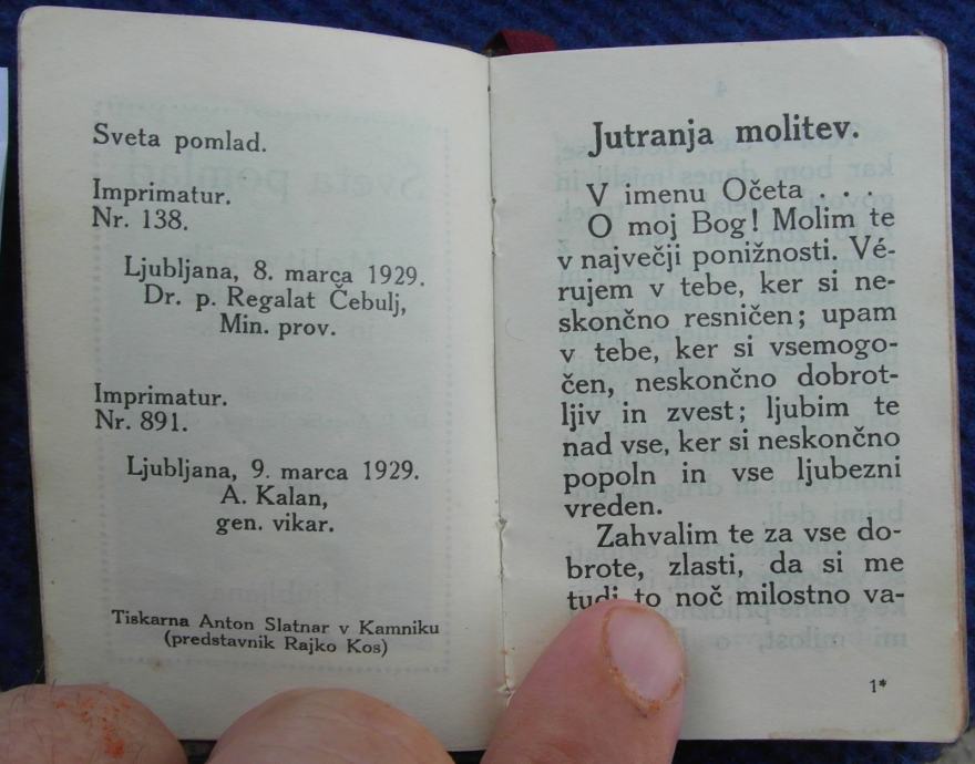 Molitvenik na slovenskom Sveta pomlad iz 1929 godine