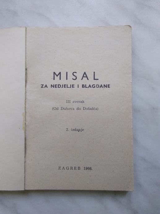 Nedeljni Misal III. dio: Od Duhova do Došašća 1962.