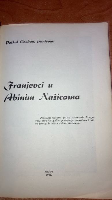 POVIJESNI-KULTURNI PRIKAZ DJELOVANJA FRANJEVACA KROZ 700 god. POSTOJANJA SAMOSTANA I CRKVE SVETOG ANTUNA U ABINIM NAŠICAMA, NAŠICE 1981.
