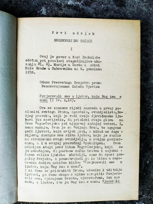 U njoj su njegove izabrane propovijedi od 1911. do 1959. godine, a kuriozitet (i ilustracija tadašnjeg položaja Katoličke crkve u jugoslavenskoj državi) je što je knjiga tiskana na ciklostilu (šapirografu).