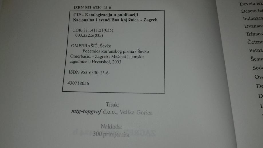 Početnica Kur'anskog pisma, Ševko Omerbašić - 2003. godina