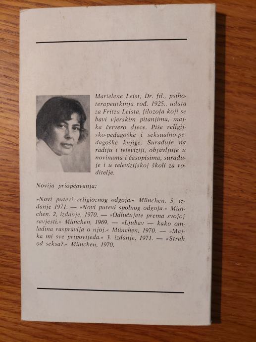 Marielene Leist, dr. fil., psihoterapeutkinja rođ. 1925., udata za Fritza Leista, filozofa koji se bavi vjerskim pitanjima, majka četvero djece. Piše religijsko-pedagoške i seksualno-pedagoške knjige. Surađuje na radiju i televiziji, objavljuje u novinama i časopisima, surađuje i u televizijskoj školi za roditelje.