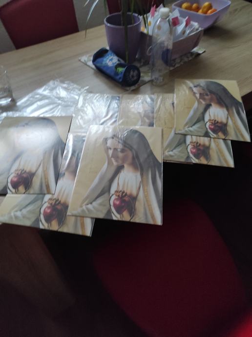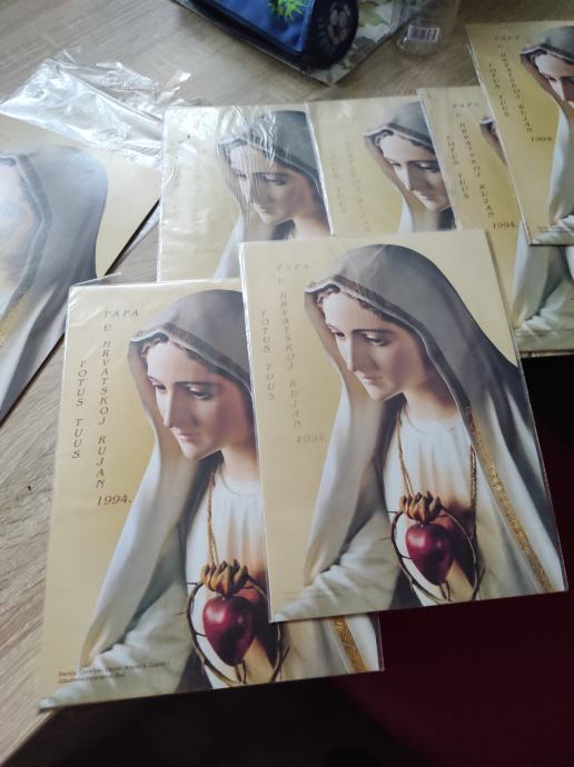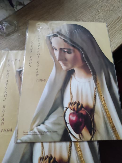 Slike Majka Bozija sa natpisom PAPA U HRVATSKOJ 1994 godine kada je Sveti otac posjetio Nasu zemlju.Slike su bile od moje bake koja ih je dobila i čuvala ,a stanje je novo- novo,u najlonu mjere 21 sa 30 , slike za uokviriti i na zid,a i nemorate uokviriti mogu se i ovako staviti na zid.Svaka slika ima natpis Papa u Hrvatskoj 1994 ,i iza kukicu za objesiti na zid, mozete me dobiti na VIBER ili NJUSKALO ,a mozete i nazvati na broj 097-660-1365, Šaljem Poštom ili Tiskom ili u dogovoru sa kupcem.Svaka slika je ZAPAKIRAN i potpuno NOVA !! VIDI SLIKE!!