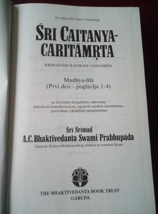 Sri Caitanya-caritamrta, 1. dio, poglavlja 1-4, u dobrom stanju.