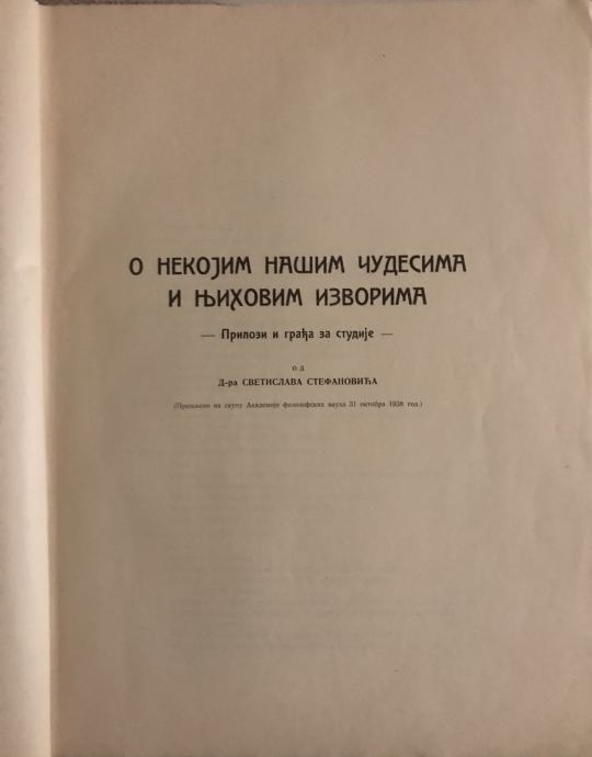 Stefanović,Svetislav : O nekojim našim čudesima i njihovim izvorima