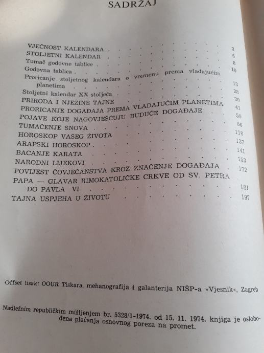 Stoljetni kalendar-Proricanja o vremenu, sudbini i događajima. U vrlo dobrom stanju.